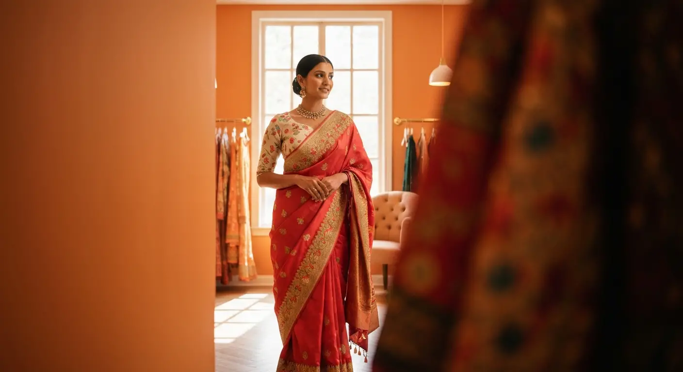 Discover and buy elegant sarees and kurtis in three simple steps with direct WhatsApp support.